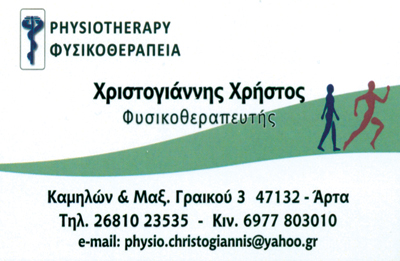 customer tabsΕπικοινωνίαΑθλητικές κακώσεις - Ρευματολογικές ΠαθήσειςΠαθήσεις Σπονδυλικής ΣτήληςΦυσικοθεραπευτέςΥγείαΚαμηλών 3 & Μαξίμου ΓραικούΑΡΤΑ ΑΡΤΑΣΑΡΤΑΗΠΕΙΡΟΣ 2681023535 6977803010physio.christogiannis@yahoo.gr Το προτείνω (έχει προταθεί 1 φορές) ΦωτογραφίεςFacebook LikeShare on FacebookTweet Widget